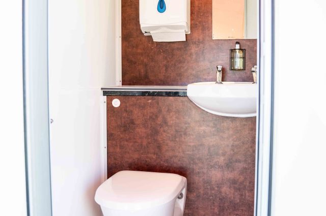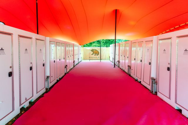 Fresh water flushing, “cleaned after every use” porcelain toilets, fully enclosed cubicles – featuring warm running water, Molton Brown hand-soap, and most importantly, mirrors!